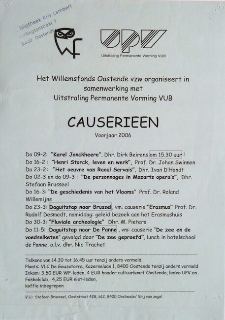 Affiche : Willemsfonds. Causerieen : voorjaar 2006. VLC De Geuzetorre. 9/02 tot 11/05/2006