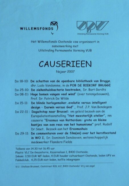 Affiche : Willemsfonds. Causerieen najaar 2007. VLC Geuzetorre. 18/10 tot 29/11/2007