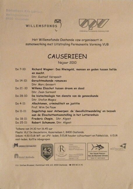 Affiche : Willemsfonds. Causerieen najaar 2010. VLC De Geuzetorre. 7/10 tot 25/11/2010