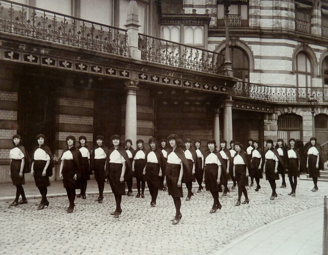 Een afdeling meisjes en dames van turnvereniging K.V.G.O. = (Koninklijk Vanneste Genootschap Oostende).