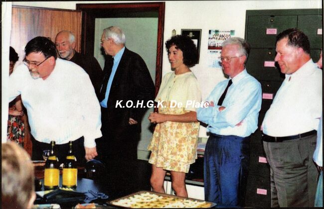 Foto 29.5 x 21 (kopie). Personeel administratie ? - ? - in het midden met blauw hemd Notebaert Danny - Vyncke Karin - Rooseboom Rita