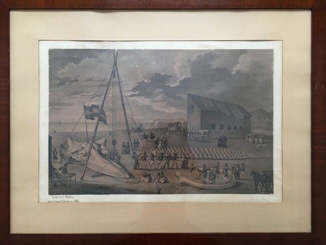 Illustratie : Het ontvlezen van de gestrande walvis in 1827