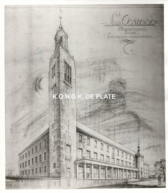 Fotocopie van Foto Luc. Wapenplein met Royal-Nord en De Gilles der zee. 40 x 29,50 cm.