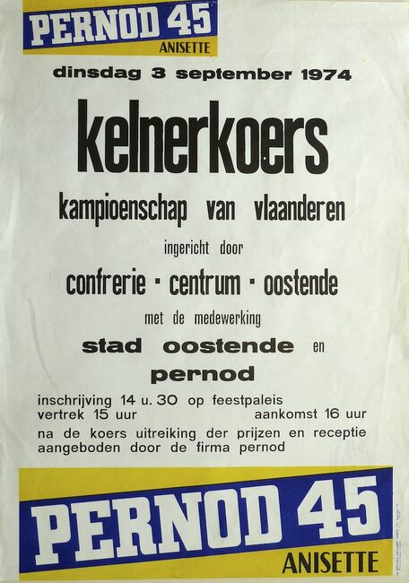 Na het geven van het startschot voor de wedstrijd voor kelners in de Van Iseghemlaan aan de Kursaal, maakt Roger De Ramée, directeur van de Kursaal, zich uit de voeten.