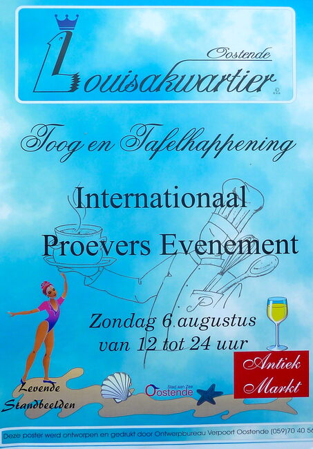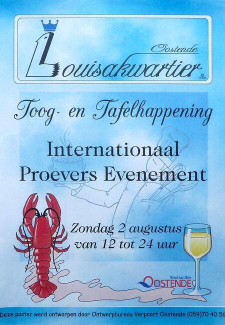 Affiche : Toog- en Tafelhappening. Internationaal Proevers Evenement. Louisakwartier. 06/08/.... (?)