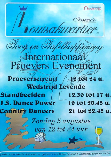 Affiche : Toog- en Tafelhappening. Internationaal Proevers Evenement. Louisakwartier. 05/08/.... (?)