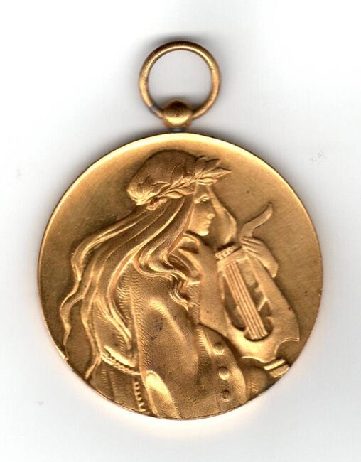 Op de voorzijde : Terpsichore, muze van de dans en de lyrische poëzie met haar lier naar rechts…