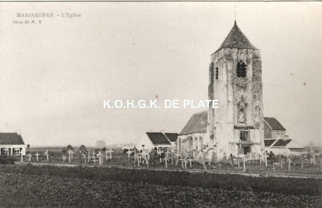 Onderschrift misleidend. - De batterij was gevestigd te Mariakerke. "De verblijven van de manschappen werden in de voet van de duin, aan de zuidzijde van de batterij opgericht. We zien de manschappen met hun gamel in…