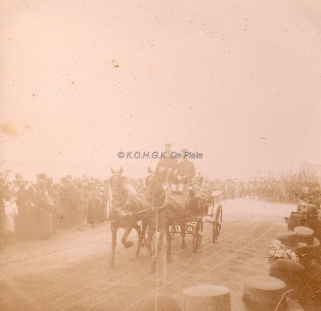 Formaat : 7.5 x 7.5 cm. - Aankomst van de Duitse Keizer en zijn gevolg, ter hoogte van de hoek Langestraat met Leopoldlaan