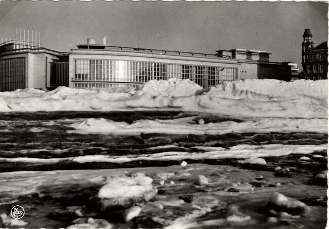 De "Ijzer", gemeerd aan de Pakketbotenkaai. Het water in de havengeul is gedeeltelijk bevroren. Het kleine vrachtschip "Ijzer" werd gebouwd in 1954 op de scheepswerf Béliard-Crighton (Oostende) voor…