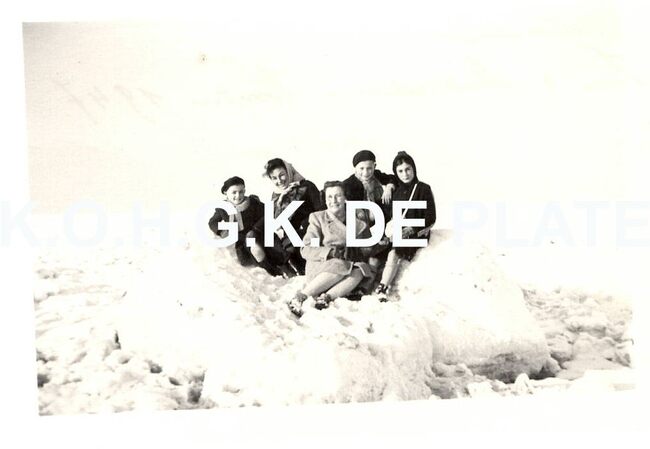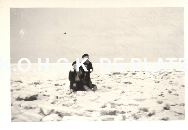 Vergroting. - Formaat : 30 x 42 cm. - Het strand aan de Zeedijk onder een massa sneeuw en ijs. Veel kijkers komen genieten van het zeldzaam schouwspel.