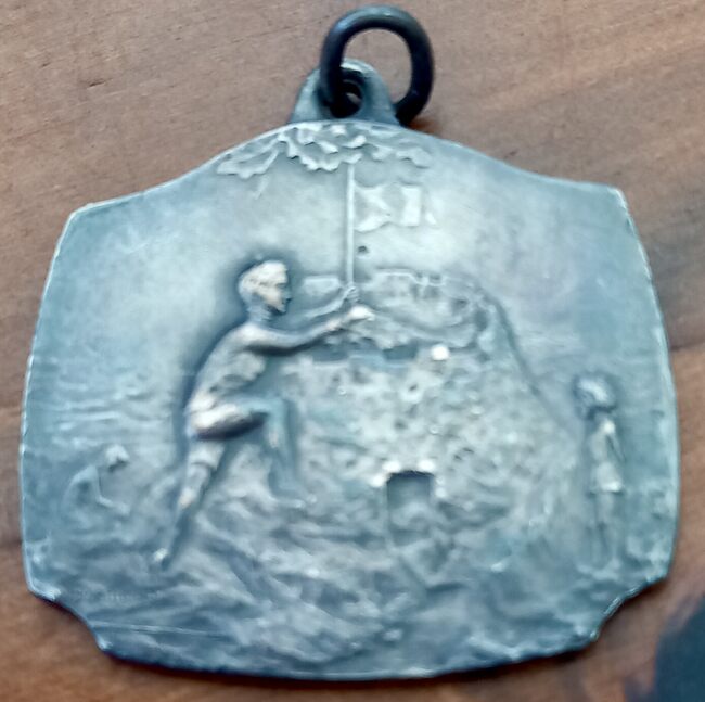 De gedenkpenning heeft een vrije vorm, met gladde geprofileerde rand, oog en ring, en is als volgt ingegraveerd: