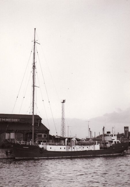 Formaat : 18 x 13 cm. - Het radioschip Magda Maria in het Vlotdok. Begin de zestiger jaren zond Radio Nord (Zweedse piratenzender) uit vanop de Magda Maria gelegen voor de Zweedse kust nabij Stockholm.