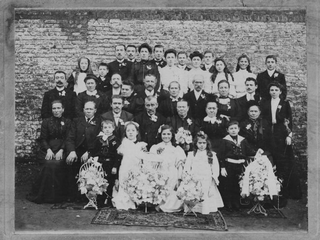 Formaat : 19 x 25 cm. - Het echtpaar Vranckx-De Gronckel vieren met familie hun zilveren bruiloft. - Map 006 A-61