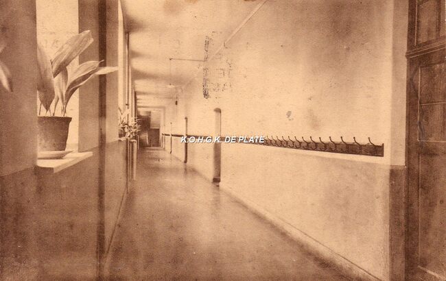 Postkaart Henri Georges. - Sint Jozefslyceum, Kaaistraat 16. - De gang naar de klaslokalen. - Informatie in : Annuaire commercial industriel et maritime d'Ostende et du Littoral. Unitas [1932], p.23