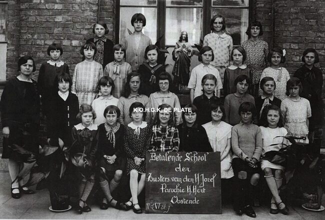 Afdruk. - Formaat : 20 x 30 cm. - Betalende school der zusters van den H. Jozef. Parochie H. Hert Oostende. V & VI st. Jaar. Juffrouw Marquerte Allein.