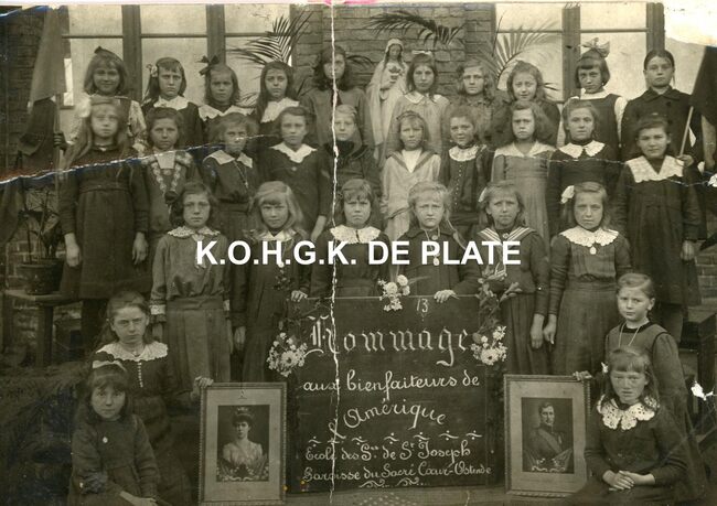 Formaat : 16.5 x 12 cm. - Hommage aux bienfaiteurs de l'Amérique . Ecole des Soeurs de Saint-Joseph. Paroisse du Sacré-Coeur-Ostende