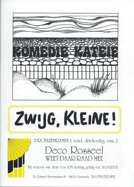 Volksstuk in 5 bedrijven van Fitzgerald Kusz. Regie : Rik Lamote. Met : beknopt programma, bestelbon en entreebiljet
