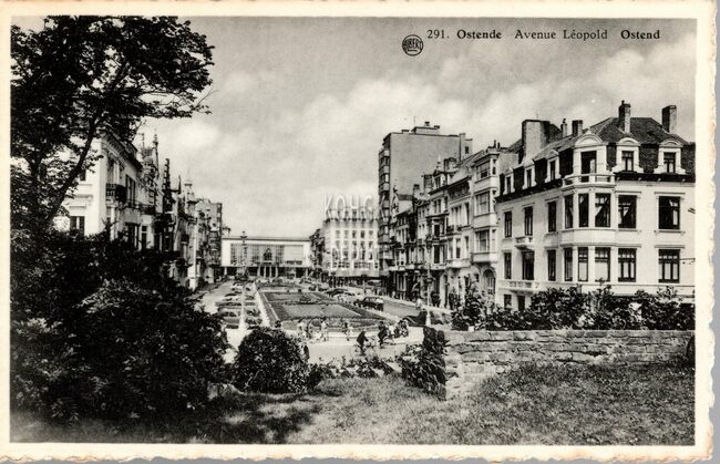 Albert, N° 291. - Ostende - Avenue Léopold. - De Leopoldlaan, gezien vanaf het Leopoldpark richting de vierde Kursaal.