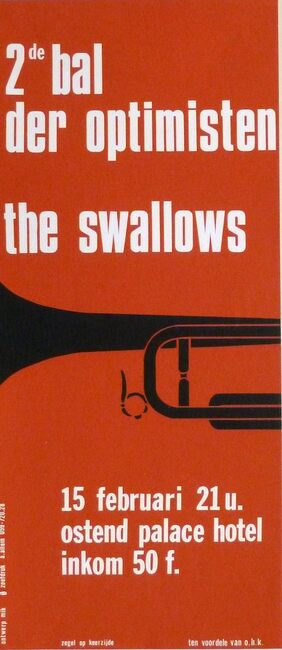 Affiche : 2de bal der optimisten. The Swallows. Ostend Palace Hotel. 15 februari .... (?)