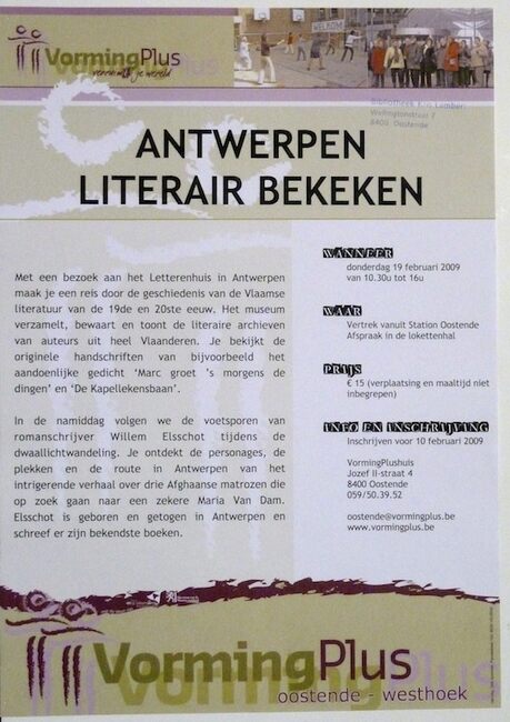 Affiche : Vormingplus. Antwerpen literair bekeken. Letterenhuis Antwerpen. 19-02-2009