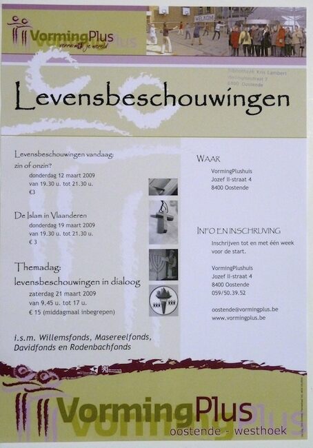 Affiche : Vormingplus. Levensbeschouwingen. VormingPlushuis. 12-19-21/03/2009
