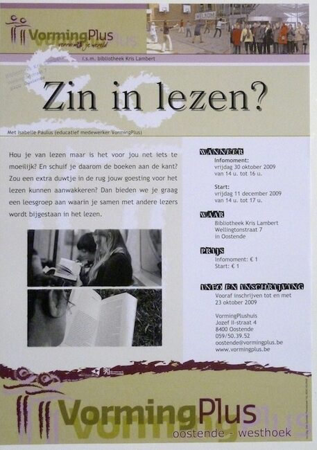 Affiche : Vormingplus. Zin in lezen?. Bibliotheek Kris Lambert. 30/10/2009