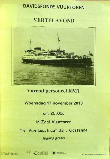 Affiche : Davidsfonds Vuurtoren. Vertelavond. Varend personeel RMT. Zaal Vuurtoren. 17 november 2010
