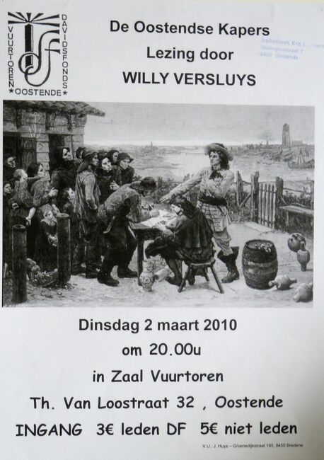 Affiche : Davidsfonds Vuurtoren. De Oostendse Kapers. Zaal Vuurtoren. 2 maart 2010.