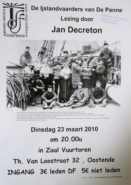 Affiche : Davidsfonds Vuurtoren. De ijslandvaarders van De Panne. Zaal Vuurtoren. 23 maart 2010.
