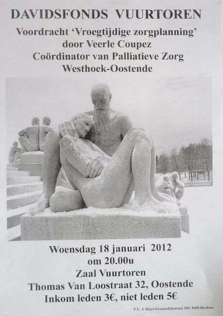 Affiche : Davidsfonds Vuurtoren." Vroegtijdige zorgplanning". Zaal Vuurtoren. 18 januari 2012