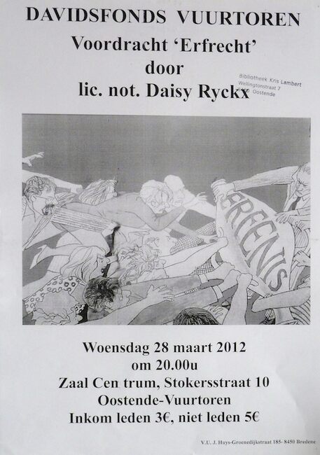 Affiche : Davidsfonds Vuurtoren. Erfrecht. Zaal Centrum. 28 maart 2012