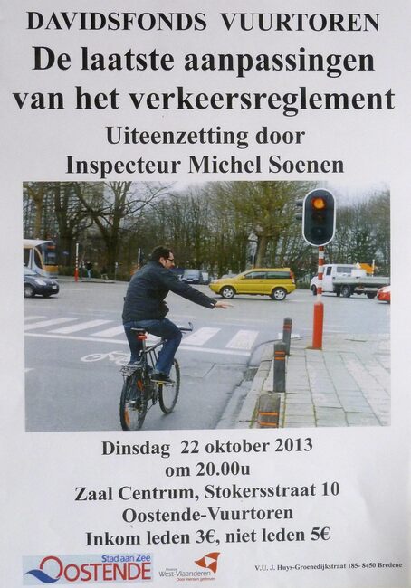 Affiche : Davidsfonds Vuurtoren. De laatste aanpassingen van het verkeersreglement. Zaal Centrum. 22/10/2013
