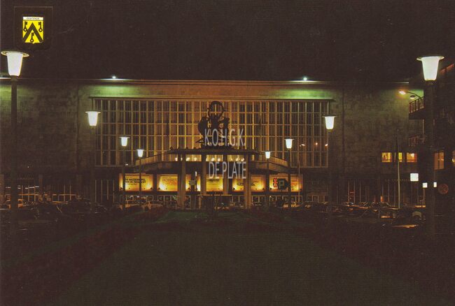 J.V.D.B., N° 102/36. - Nachtfoto van de zuidgevel van het vierde Kursaal gezien vanaf de Leopold II-laan.