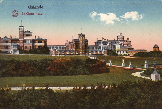 Lux, SéR, 116, 4. - Le Châlet Royal Ostende. - Gekleurde postkaart. - De zuidkant van het Koninklijk Chalet met zijn tuinen, gezien vanaf de Koninigin Astridlaan