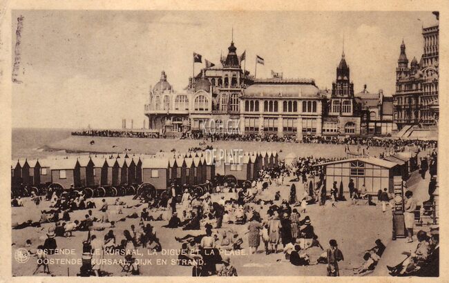 Nels, Série Ost, N° 21. - Ostende - Le Kursaal, la digue et la plage. Oostende - Kursaal, dijk en strand. - Strandrecreatie op het Groot Strand nabij de westelijke gevel van het derde Kursaal langs de Zeedijk.