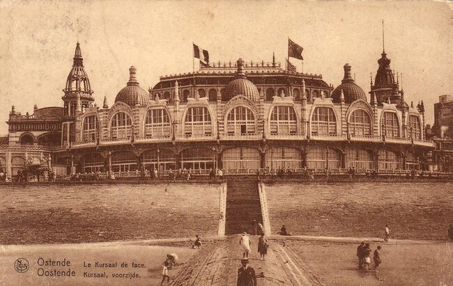 Nels, Série 13, N° 109. - Ostende - Le Kursaal de face. Oostende - Kursaal, voorzijde. - De noordgevel van het derde Kursaal langs de Zeedijk. Vooraan, het Groot Strand en golfbreker.
