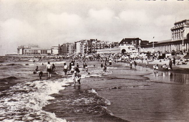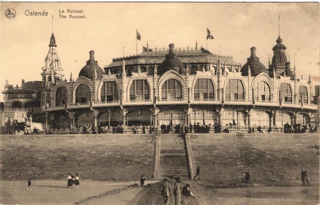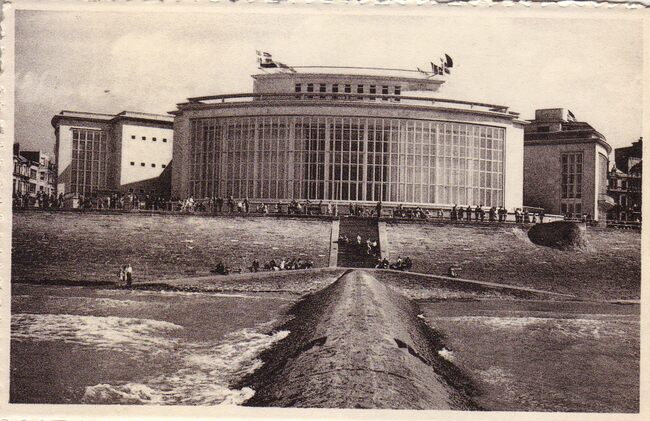 Nels. - Vooraan, het Groot Strand. De westgevel van het vierde Kursaal, gelegen langs de Albert I-promenade (Petit Nice)