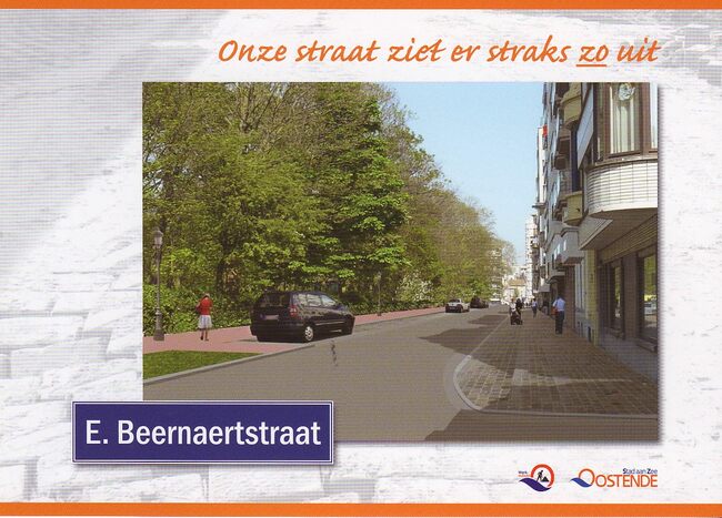 Onze straat ziet er straks zo uit E.Beernaertstraat. - Links, het Leopoldpark