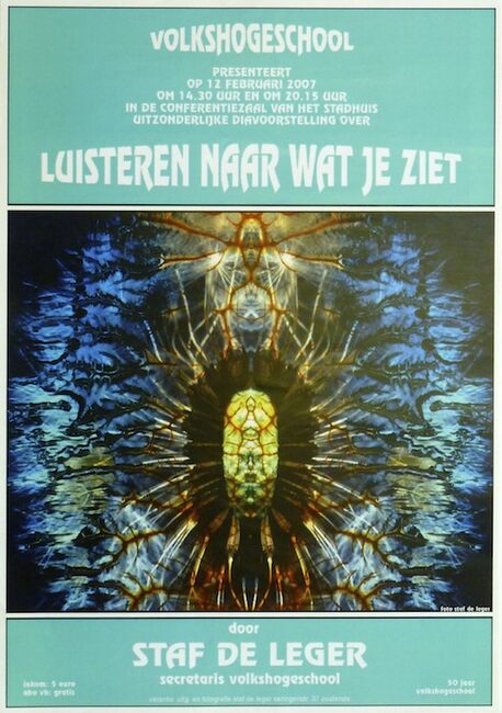 Affiche : Volkshogeschool. Luisteren naar wat je ziet. Conferentiezaal stadhuis Oostende. 12/02/2007