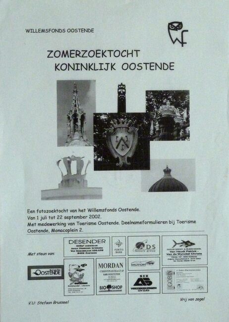 Affiche : Willemsfonds Oostende. Zomerzoektocht: Koninklijk Oostende. Geen plaatsbeschrijving. 1/07 tot 22/09/2002