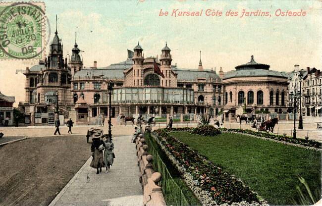 Valentine, N° 56353. - Ostende - La Plage et le Kursaal. - Spelende kinderen op het Groot Strand nabij de westelijke gevel van het derde Kursaal langs de Zeedijk.