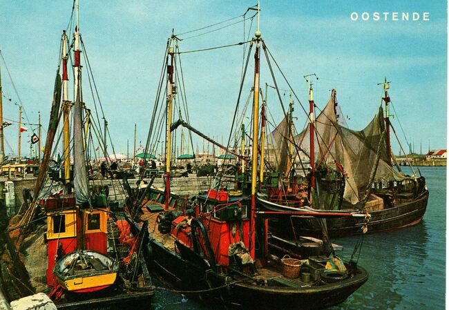 Van Mieghem A., Oostende. - Vissersvaartuigen aangemeerd in het Montgomerydok nabij de vistrap.