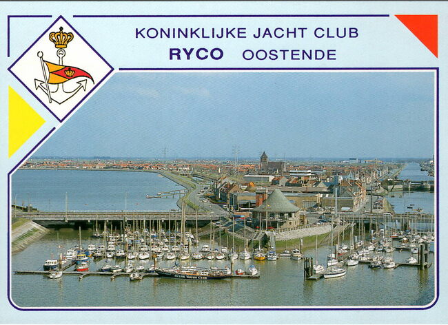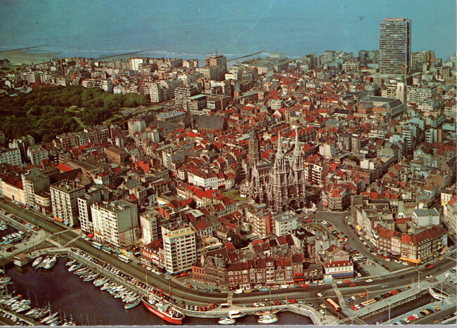 AVM, N° V.N. 90 1042. - Adres : Dokter Eduard Moreauxlaan 2, Oostende. In het midden, het clubhuis in de achterhaven. Links, de Spuikom en de Vuurtorenwijk. Rechts, het kanaal Oostende - Brugge