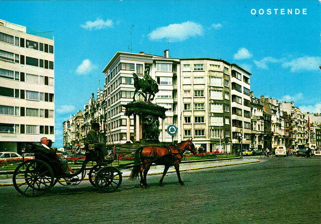 Van Mieghem A., N° 78. - Oostende - Leopold I plein. Place Léopold 1er. Square Leopold I. Leopold I Platz. - Het Leopold I-plein en het Leopold I monument. Rechts, de Van Iseghemlaan en in het midden, de Kemmelbergstraat…