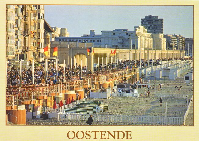 AVM A.158. - Genieten van een zonnige dag op de Albert I-promenade. Op de achtergrond, de westgevel van het vierde Kursaal