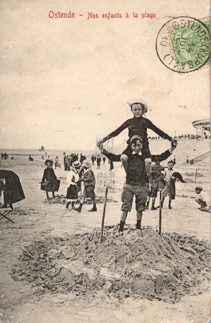 Ed. V.G. [=Victor Grégoire], 42 avenue du midi, Bruxelles. - Ostende - Nos enfants à la plage. - Kinderen spelen op het strand