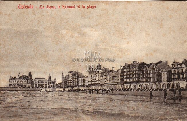 Edit. V.G.[Victor Grégoire], 42, Avenue du Midi, Bruxelles. Ostende - Vue sur Ostende. - De Zeedijk met zicht op de Koninklijke Gaanderijen, het Koninklijk Chalet, de grote hotels en op het einde de derde Kursaal. De…