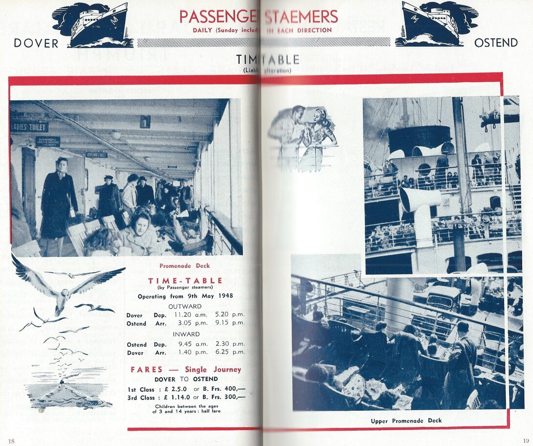 Trefwoorden ZEEWEZEN EN RMT ; UURREGELINGEN OOSTENDE DOVER LIJN Plaatskenmerk C705 Deelbeschrijving uit boek of document Belgium 1948 : Handbook for motorists 1948 Pagina 18-19,foto's Print