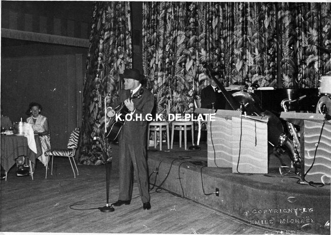 Formaat : 13 x 18 cm. - Hij trad op van 20-21/08/1955 in de Ambassadeurszaal en van 22-26/08/1955 in de Night Club "La Champagne". Hier in de Night Club "La Champagne".